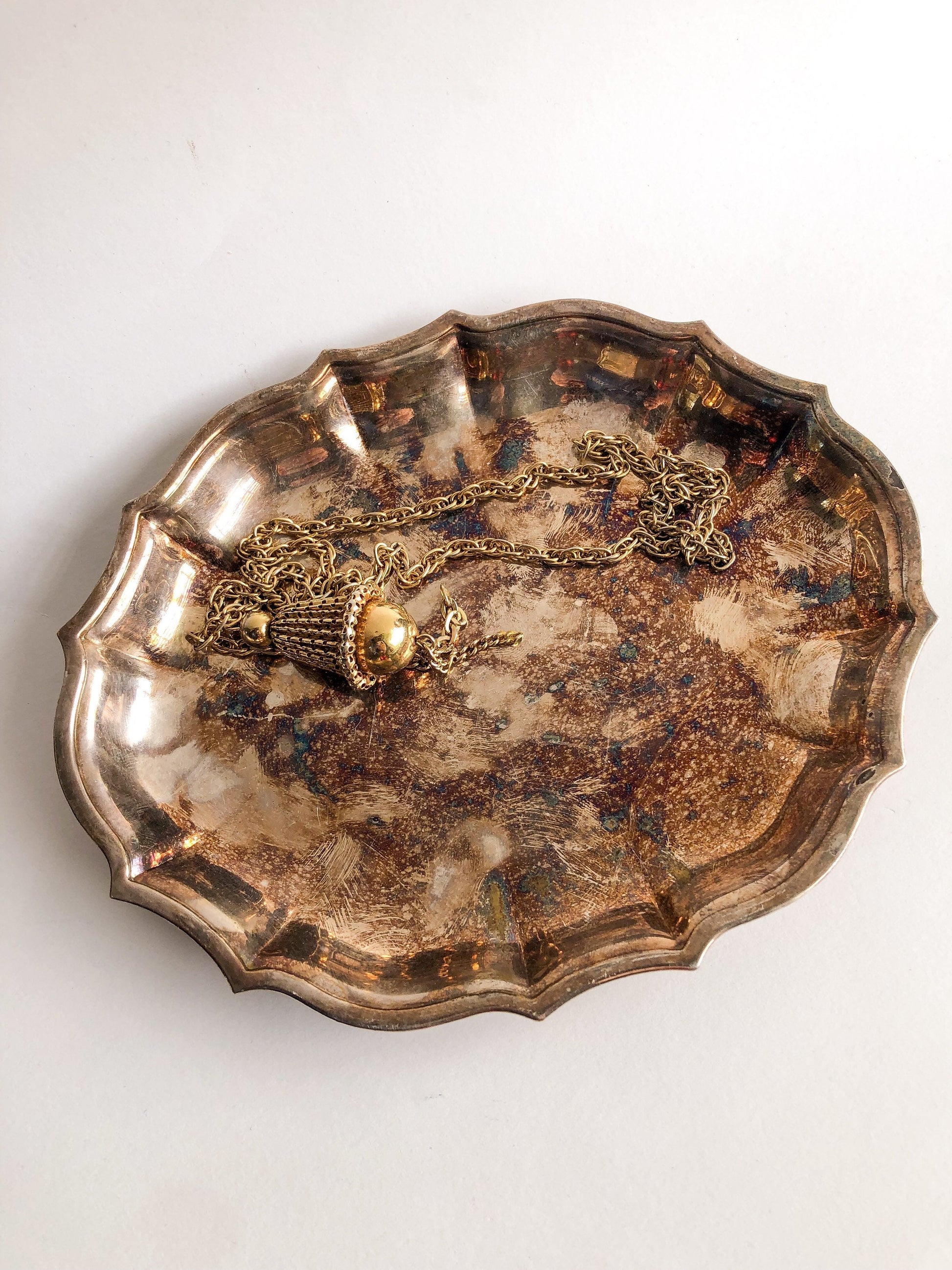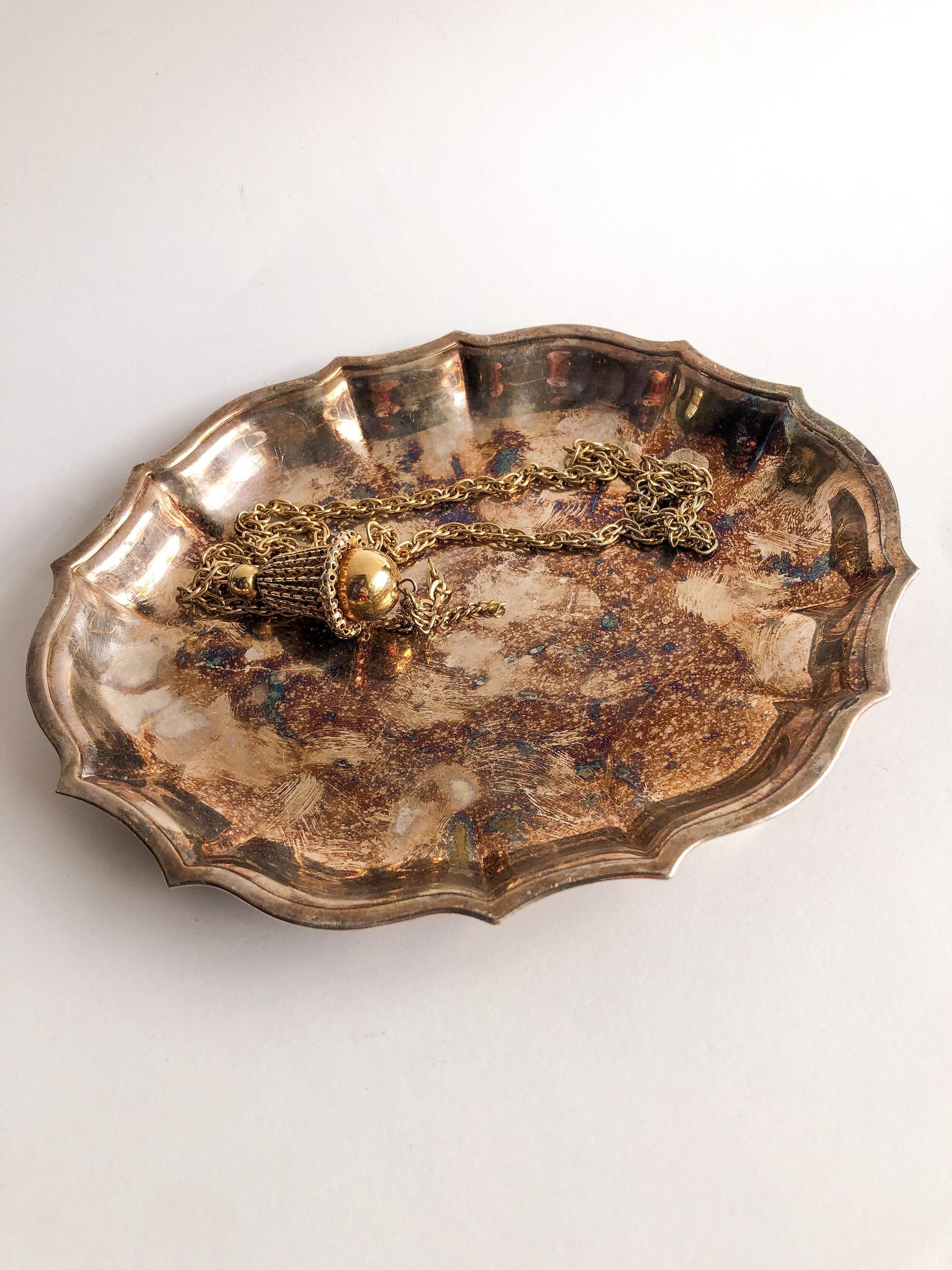 Ornate Antique Silver Plate Tray, Catch-all Dish, Jewelry Tray