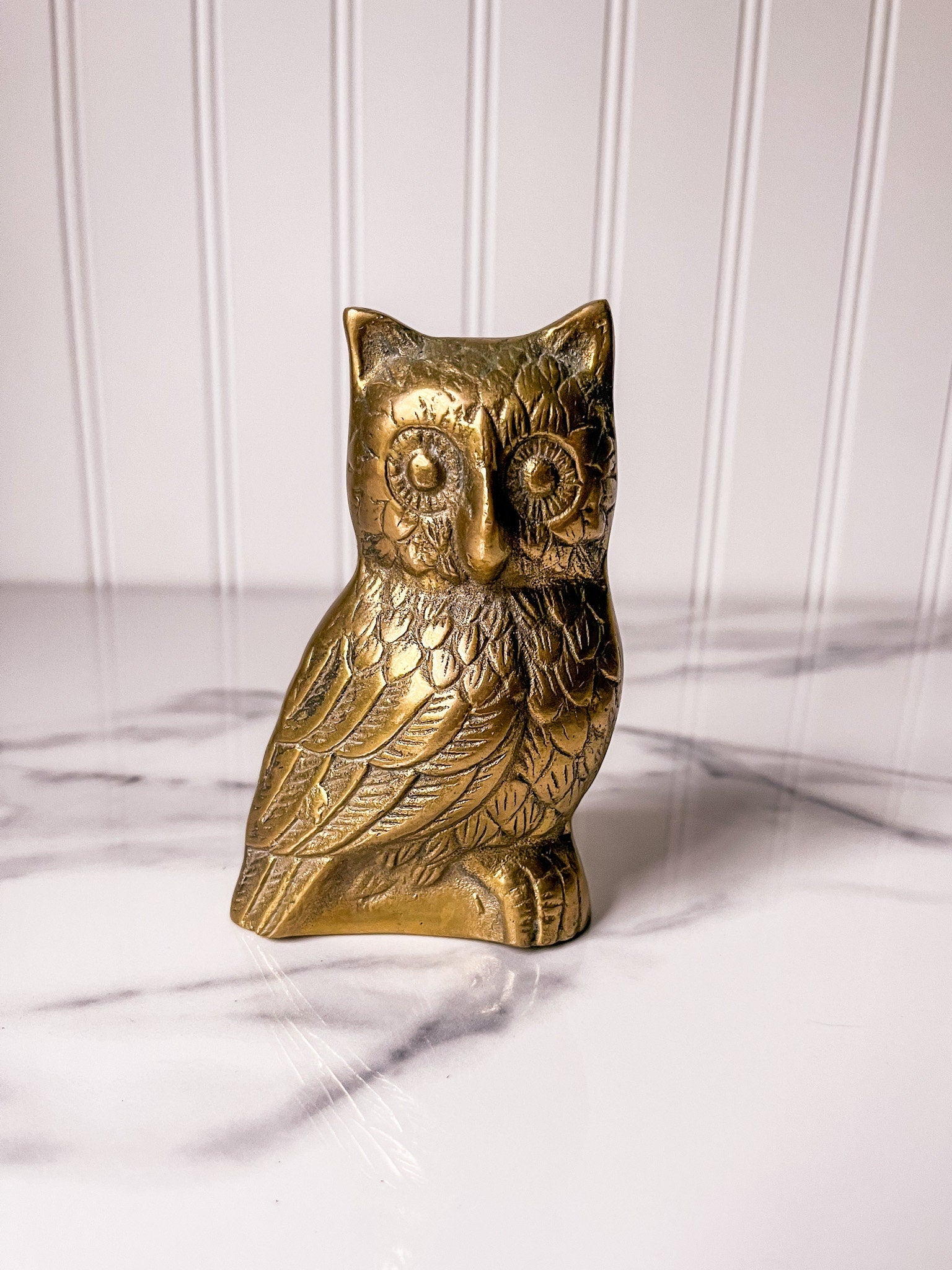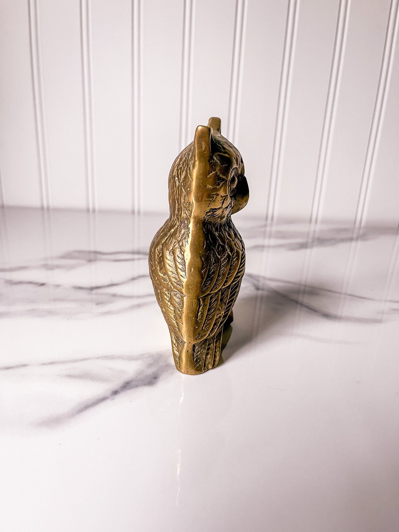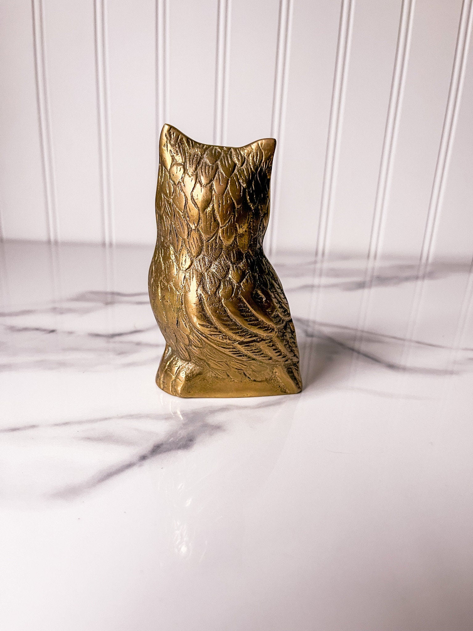 Beautiful vintage brass owl in great vintage condition. Perfect for an additional piece of home decor or to add to your owl or brass collection. It measures 4.25” H x 2.5” W x 2” D.