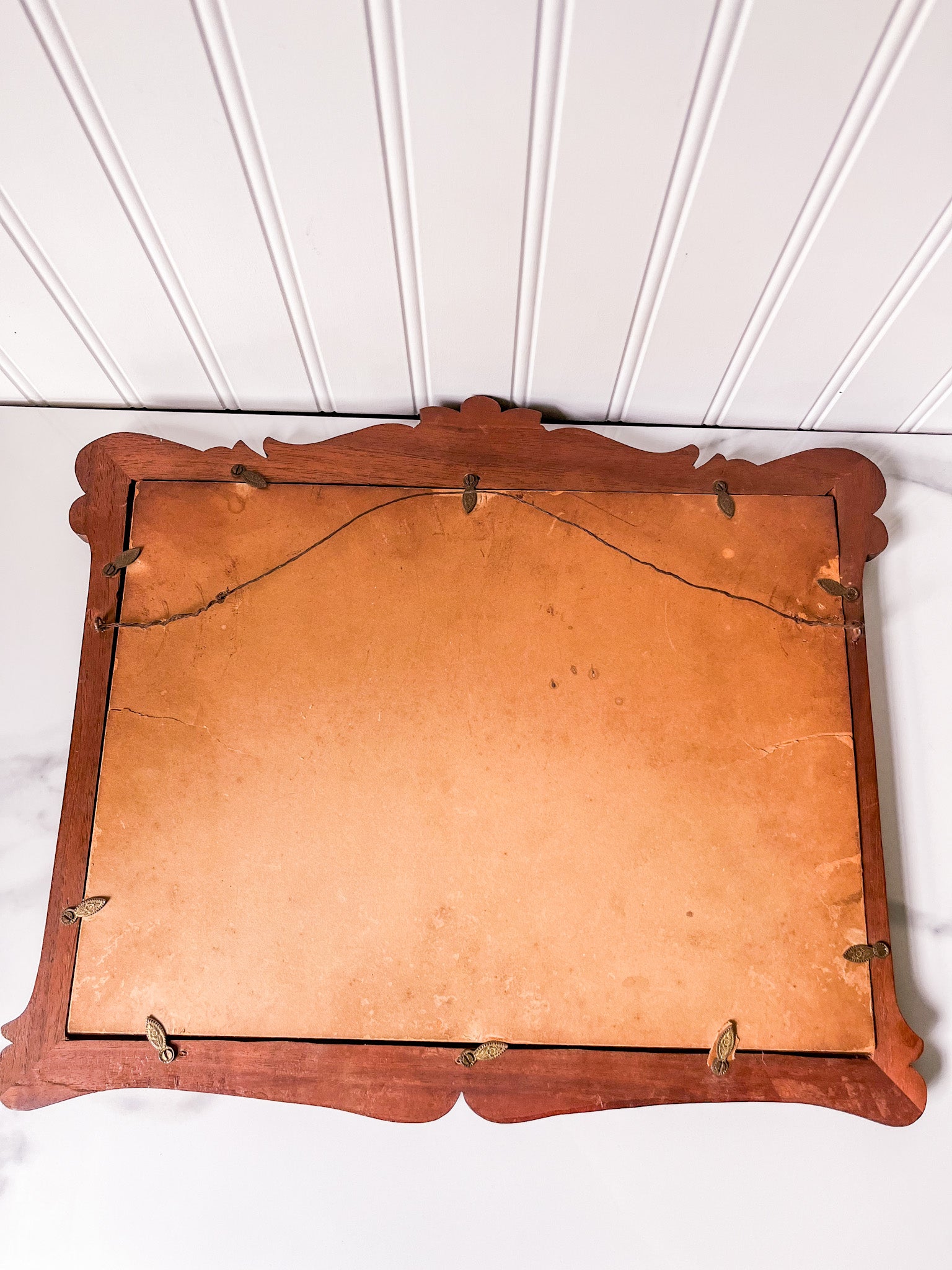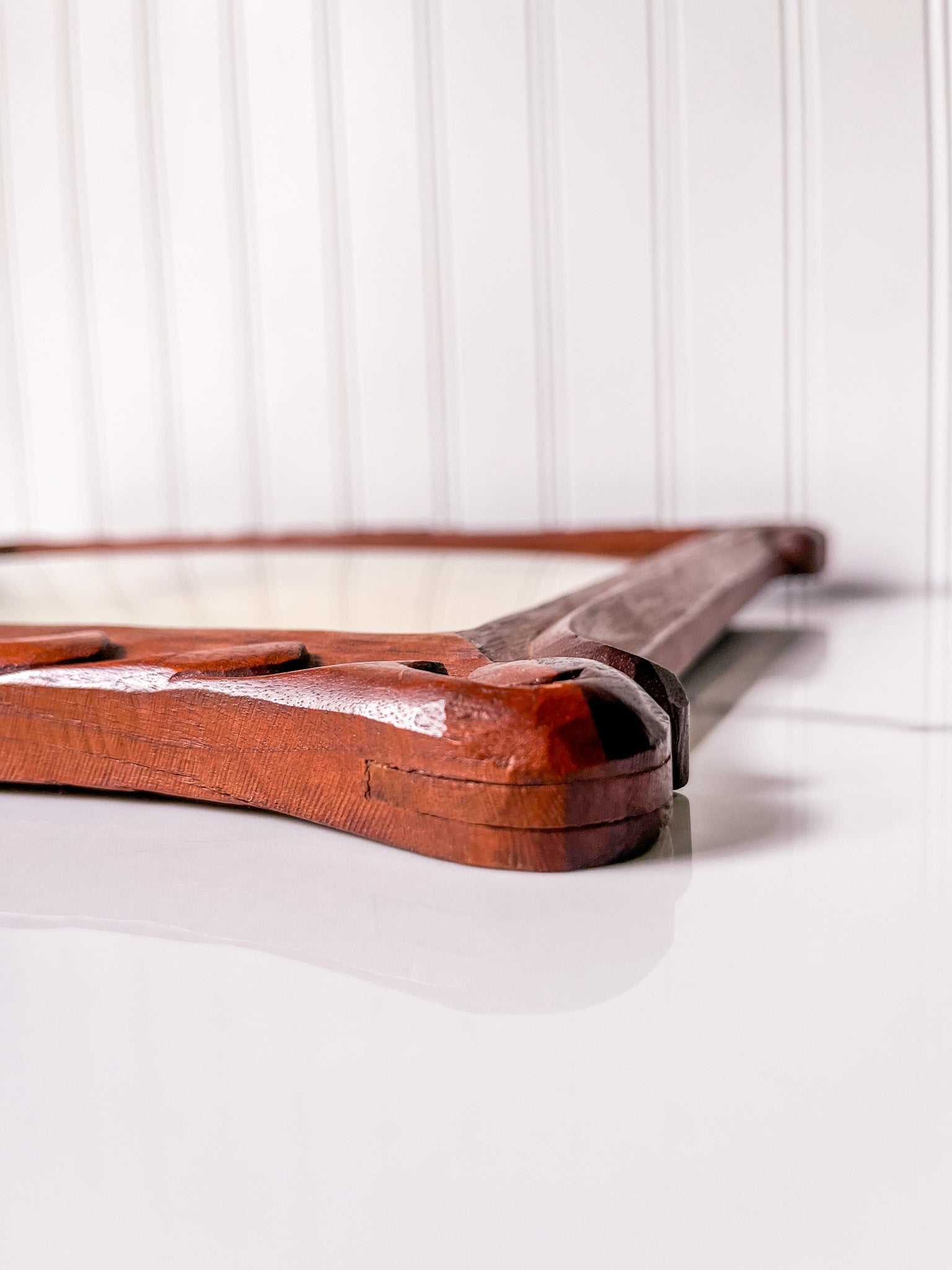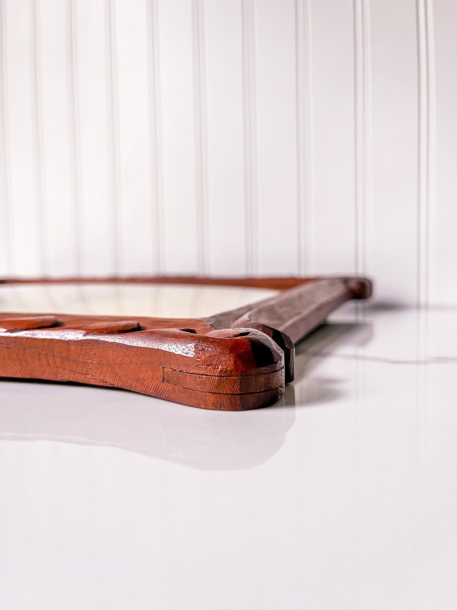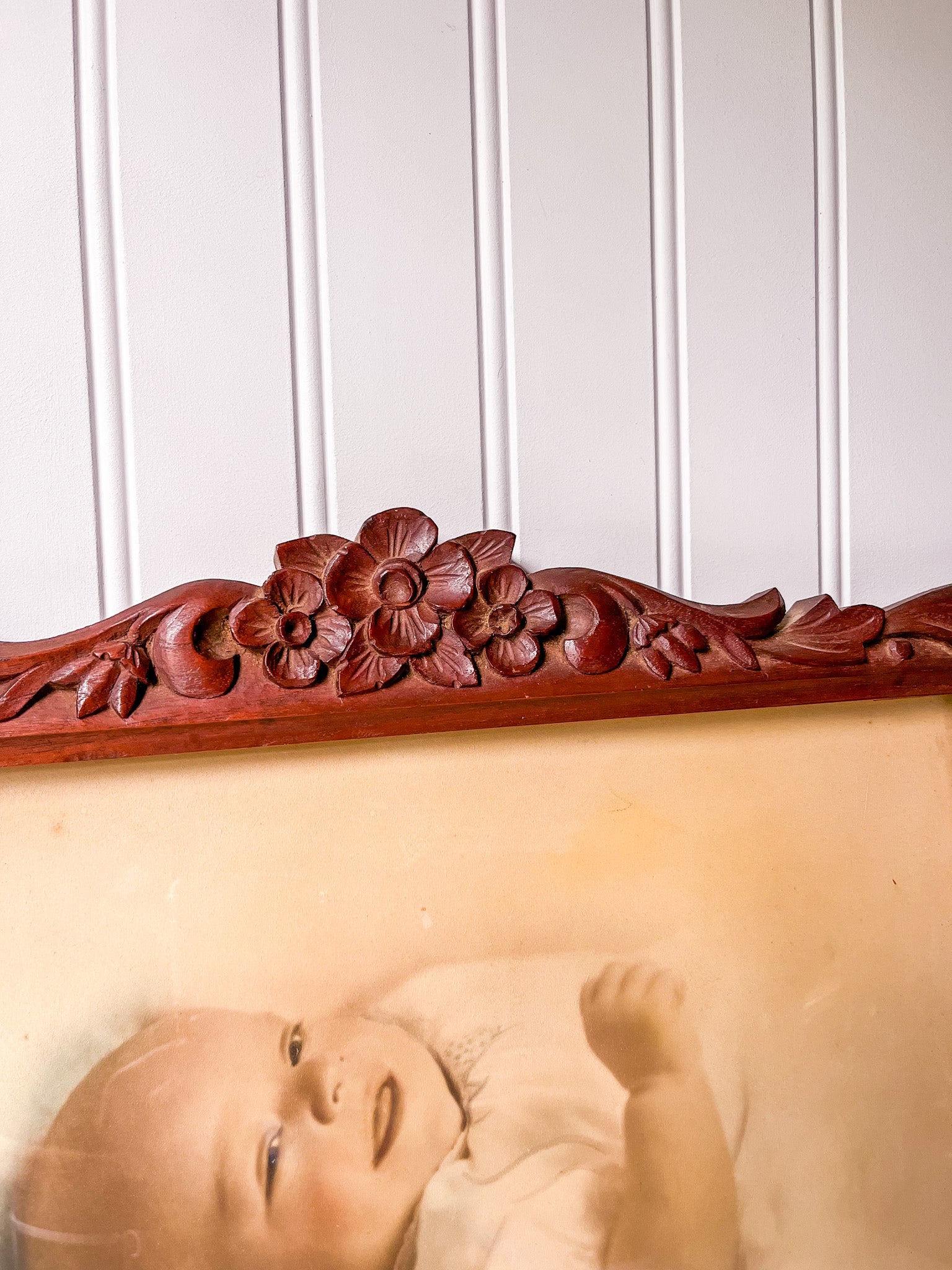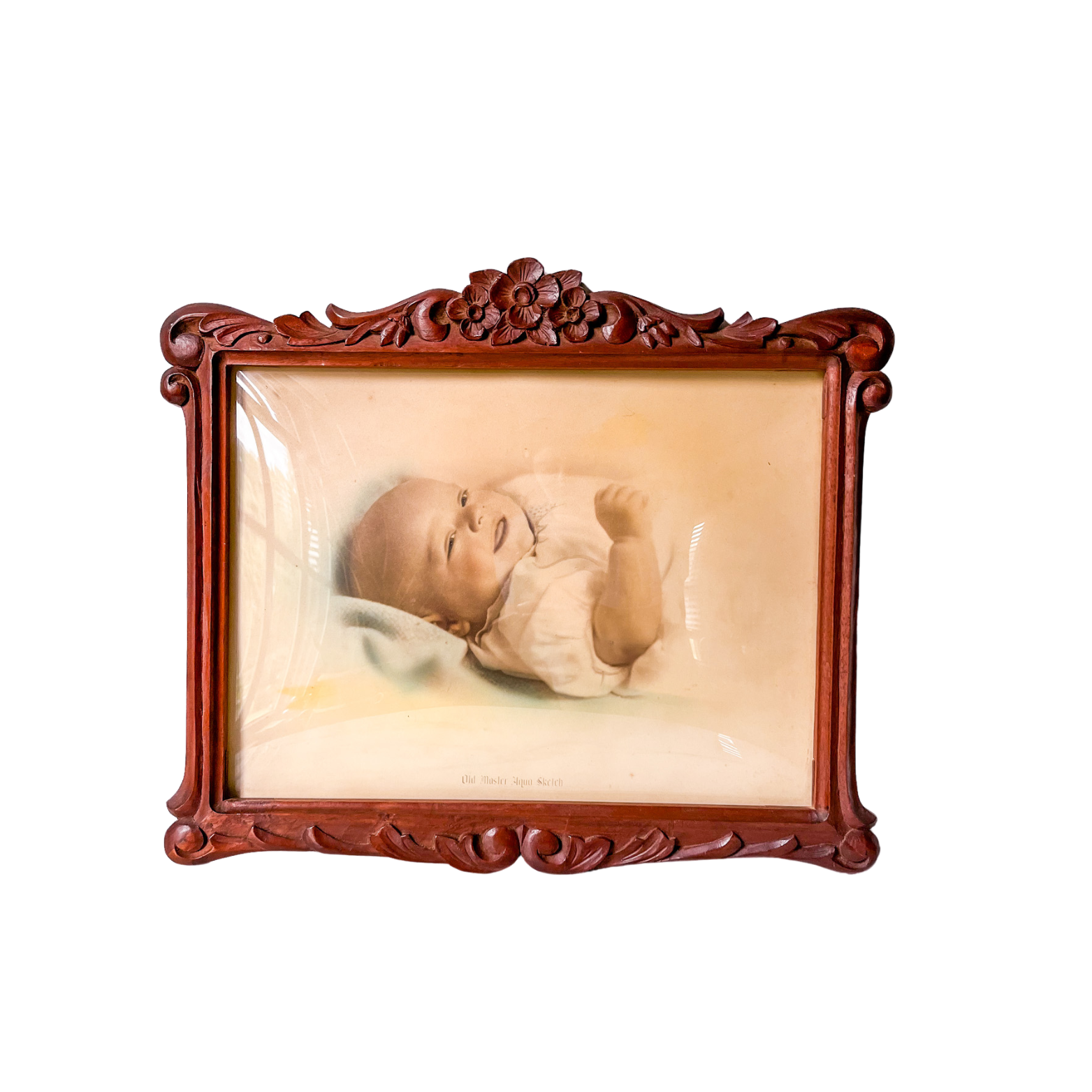 Vintage Hand Carved Floral Wood Frame with Convex Bubble Glass 1930's