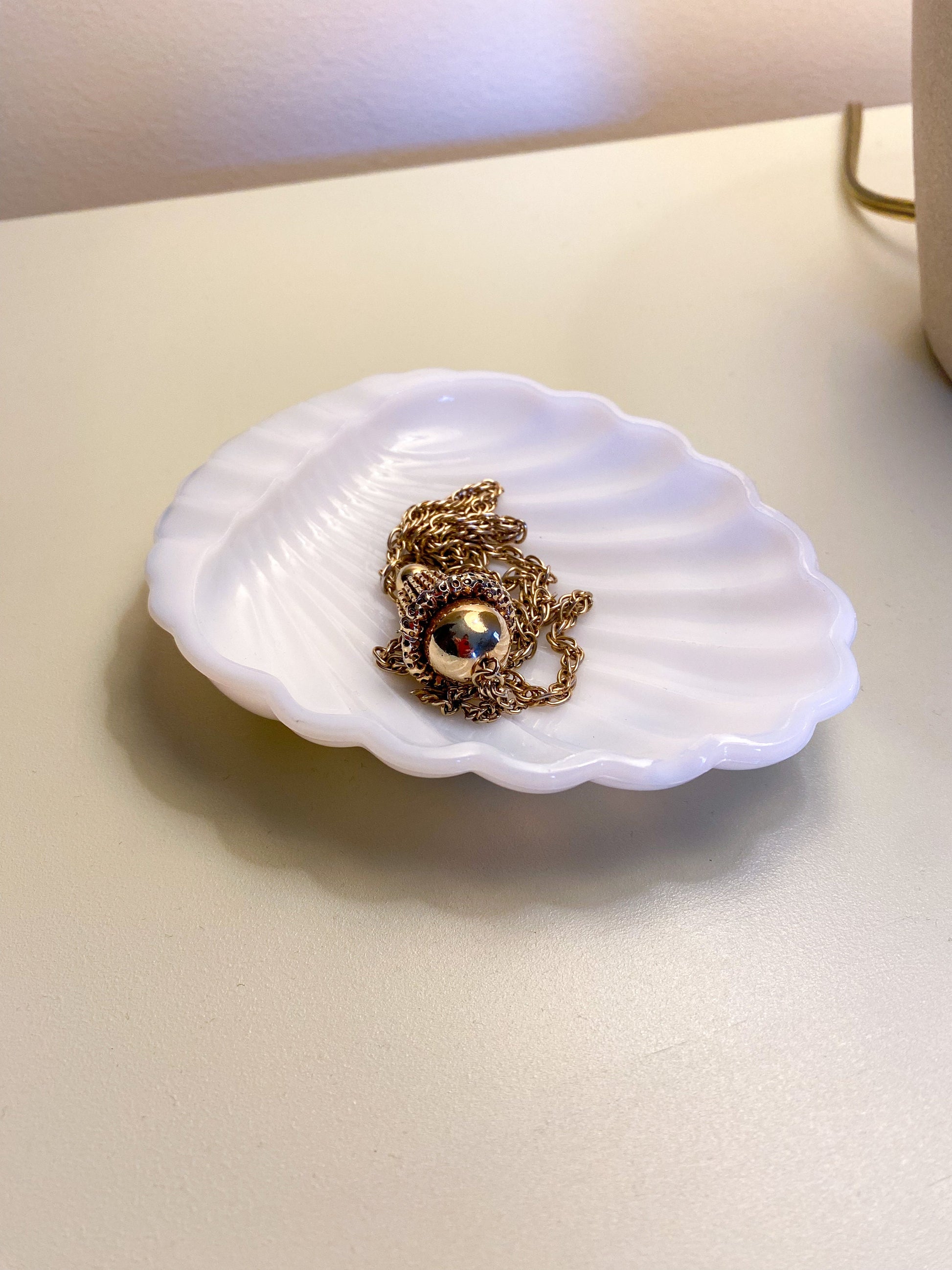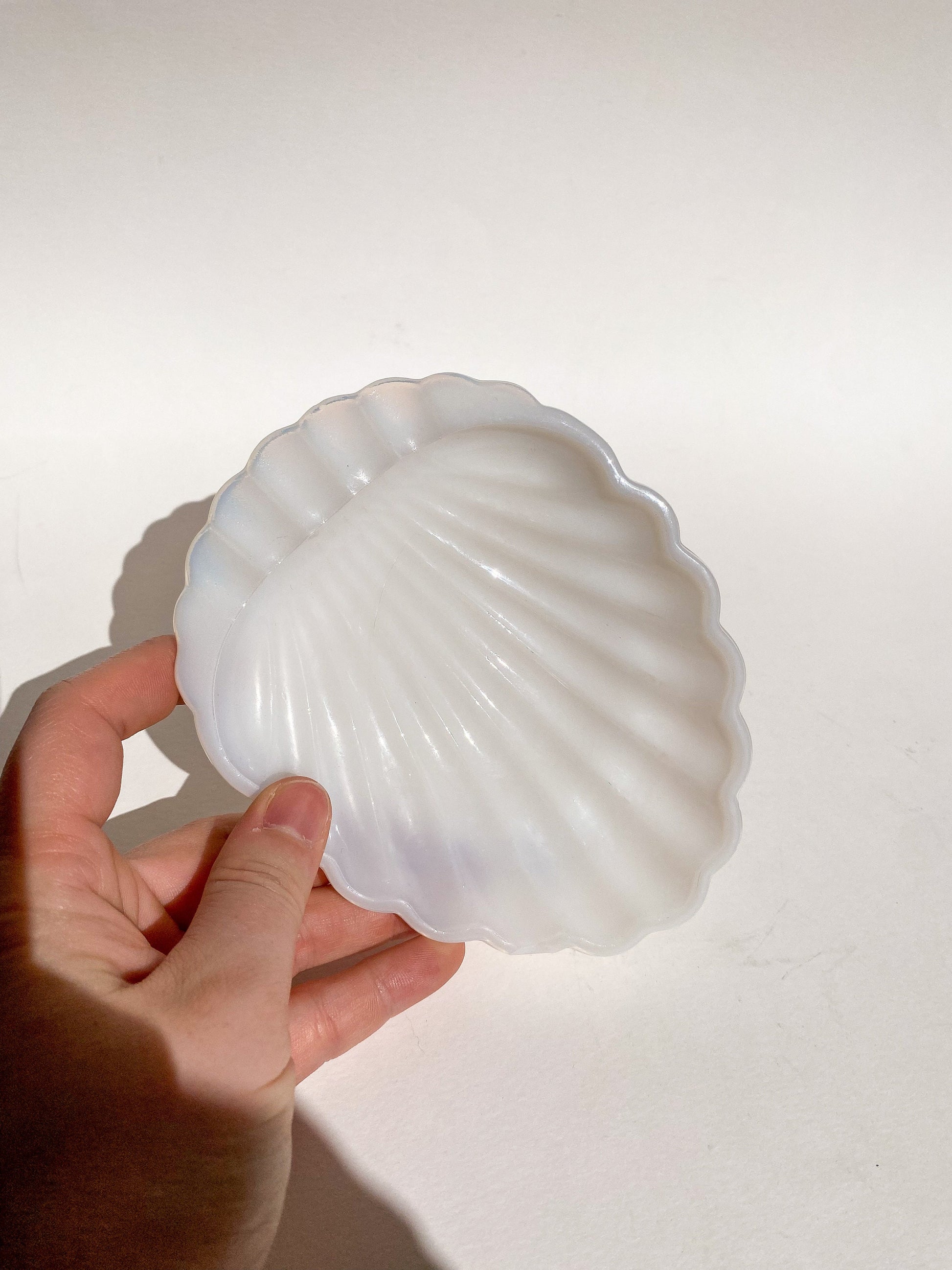 Beautiful vintage sea shell milk glass dish. Could be a soap holder or trinket/ring dish.